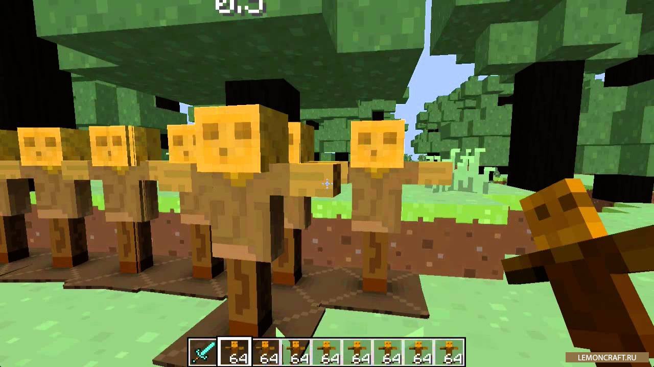 Благодаря моду Test Dummy у вас появится возможность совершенствовать свои знания владения оружием на тестовом манекене. Данный манекен невозможно разрушить, поэтому можете проводить над ним различные эксперименты, стрелять в него из лука, взрывать его, колоть мечом, ему все не почем. Ударив манекен вы будете видеть какое оружие обладает большей мощностью - над манекеном загорится цифра соответствующая силе удара.